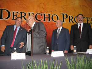“Estamos celebrando el inicio de esta magnífica reunión, que será memorable para nosotros, en virtud de la presencia de tan prestigiados conferencistas nacionales e internacionales, de los más de 40 ponentes que participarán en las 16 mesas de trabajo y de todos ustedes, que desde diversos puntos del país se han dado cita en este Centro de las Artes, para hacer contribuciones importantes a las diversas disciplinas del derecho procesal y renovar nuestros bríos con el fin de impulsar con más fuerza el desarrollo de nuestras capacidades profesionales, de las instituciones universitarias y en especial de las de impartición de justicia”.