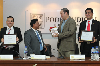 En el evento estuvieron presentes el Lic. Juan Sebastián Sotomayor Tovar, Magistrado Presidente del Poder Judicial de Sonora, Dr. Apolonio Betancourt Ruiz, Magistrado Presidente de Tribunal Superior de Justicia de Durango, Dr. Jesús Julián Rodríguez Cabral, Director General del Organismo Implementador de la Reforma Penal en Durango, Lic. Juan Guillermo Toro Lerma, Magistrado del Tribunal Superior de Justicia de Durango, así como Magistrados del Pleno del Supremo Tribunal de Justicia de Sonora.